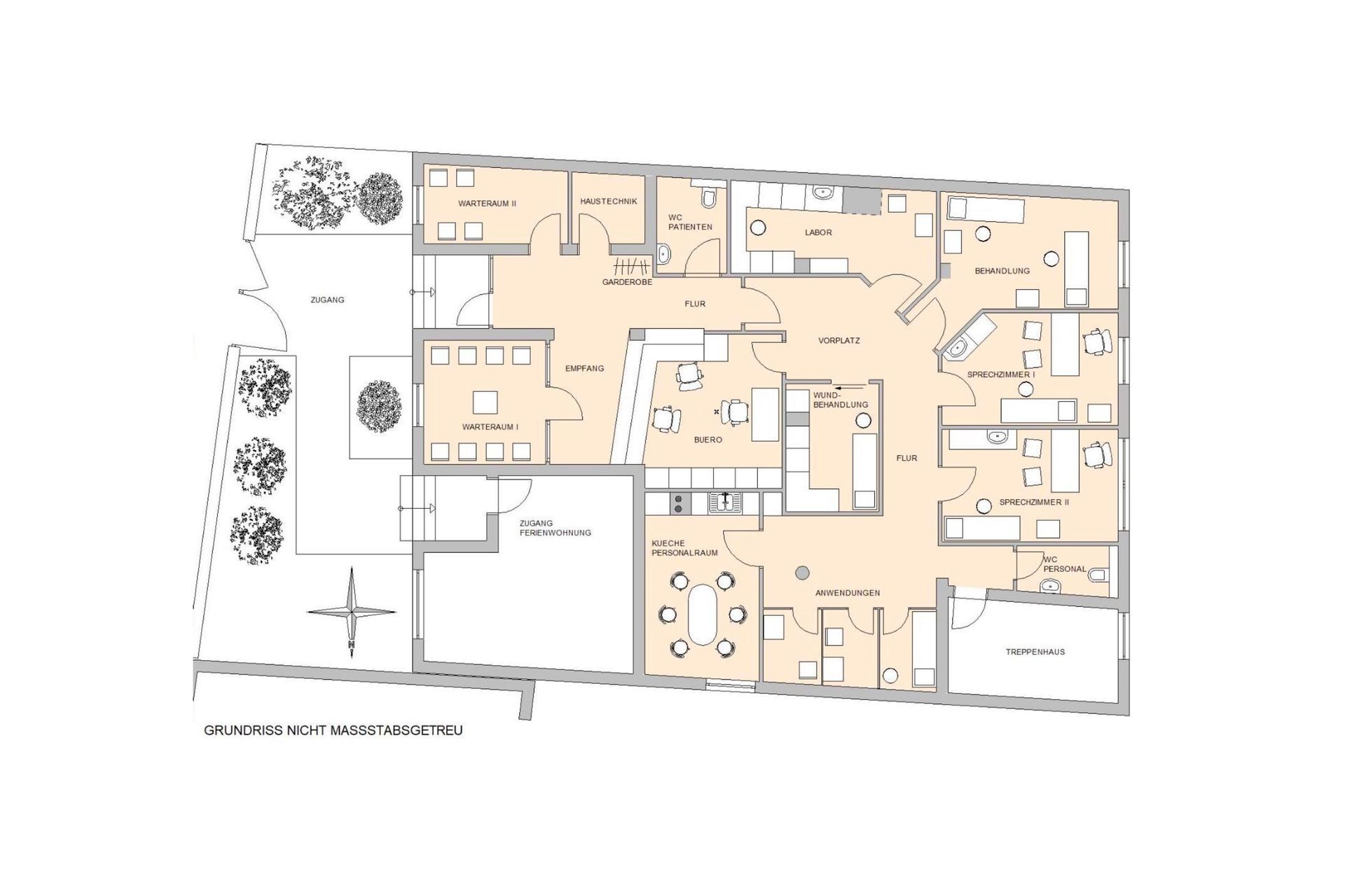 Für Ärzte besteht zudem die vorübergehende Möglichkeit, die darüber befindliche möblierte Ferienwohnung mit 4 Zimmern und 80 m2 Wohnfläche sowie einer 50 m2 großen Dachterrasse anzumieten. Diese zusätzliche Fläche kann als privater Rückzugsort genutzt werden und bietet Ihnen weiteren Komfort bis Sie sich in Ihrem neuen Wohnort eingelebt haben.